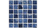 The Fiji Bay Blue 1" x 1" glossy tile captures the elegance of its larger counterpart in a compact size, featuring stunning deep blue, cobalt, and gray shades.