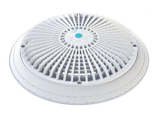 Aquastar Pool Products 10" white round star sumpless suction outlet cover with universal adapter is designed for both retrofit and new construction applications, offering a seamless fit over flush-mounted suction outlets without the need for a sump.