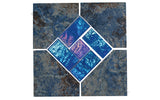 The Aztec Collection Cobalt Deco Tile features a striking blend of blue and brown stone-look pieces, with a bold brown diamond at its center, creating a beautiful focal point.