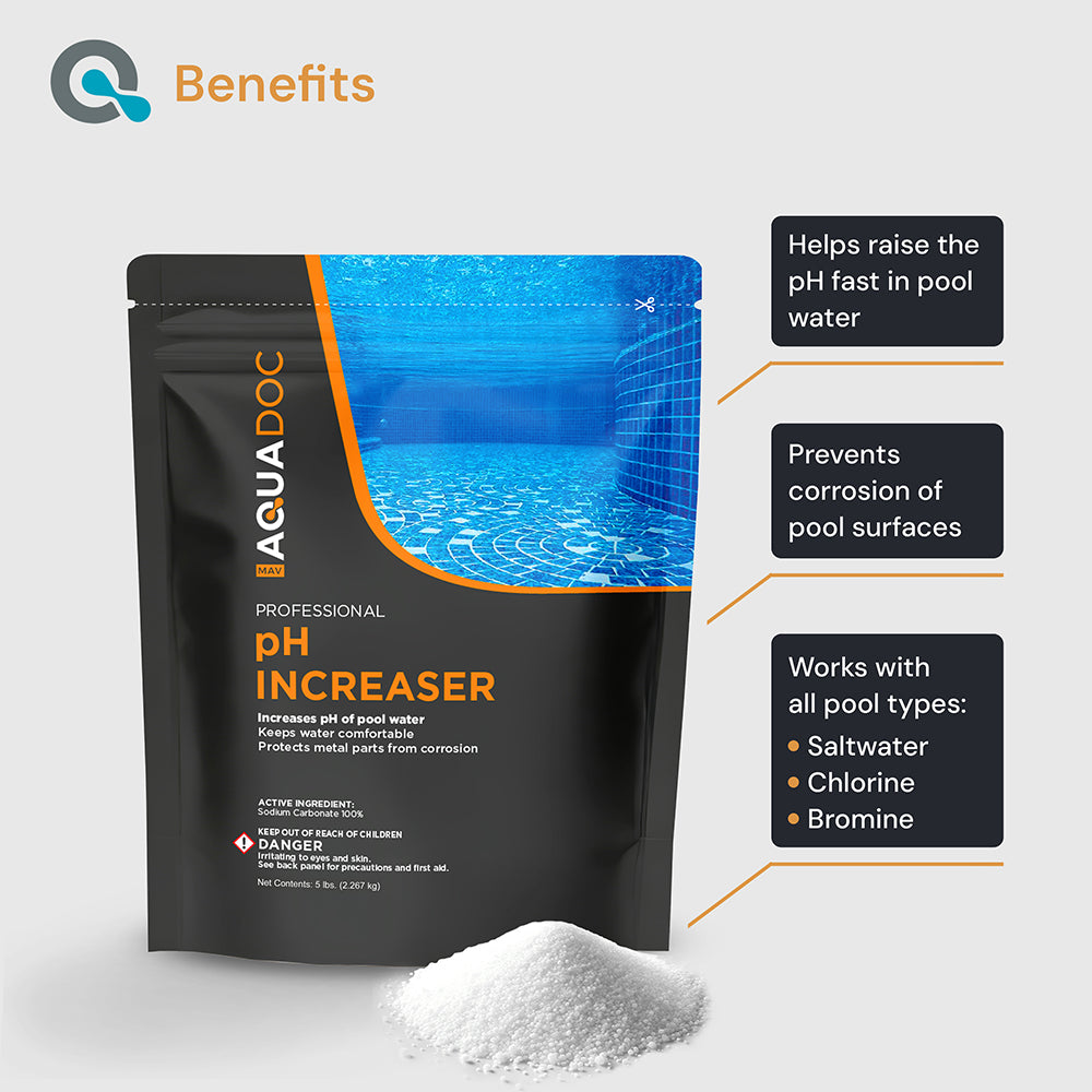 A: It raises low pH levels in your pool water, helping to prevent corrosion and maintain a healthy, balanced pool.