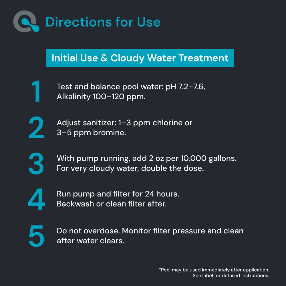 A: Use 2 oz of clarifier per 10,000 gallons of water weekly, or as needed when water appears cloudy.
